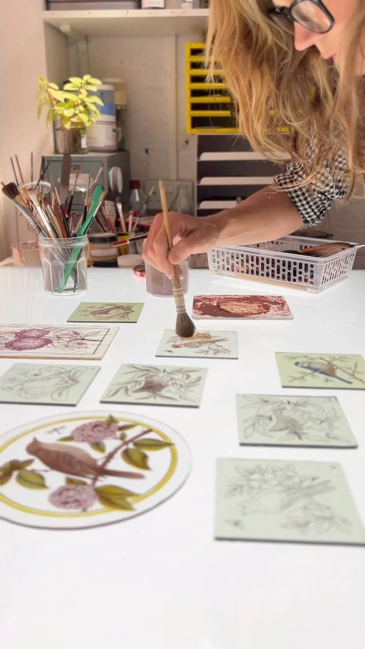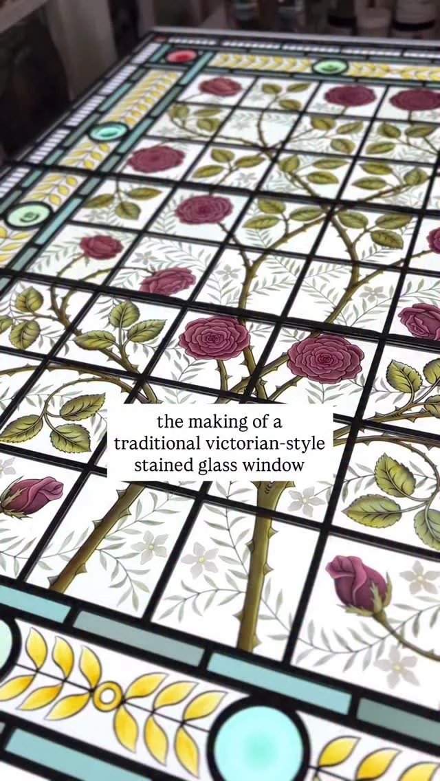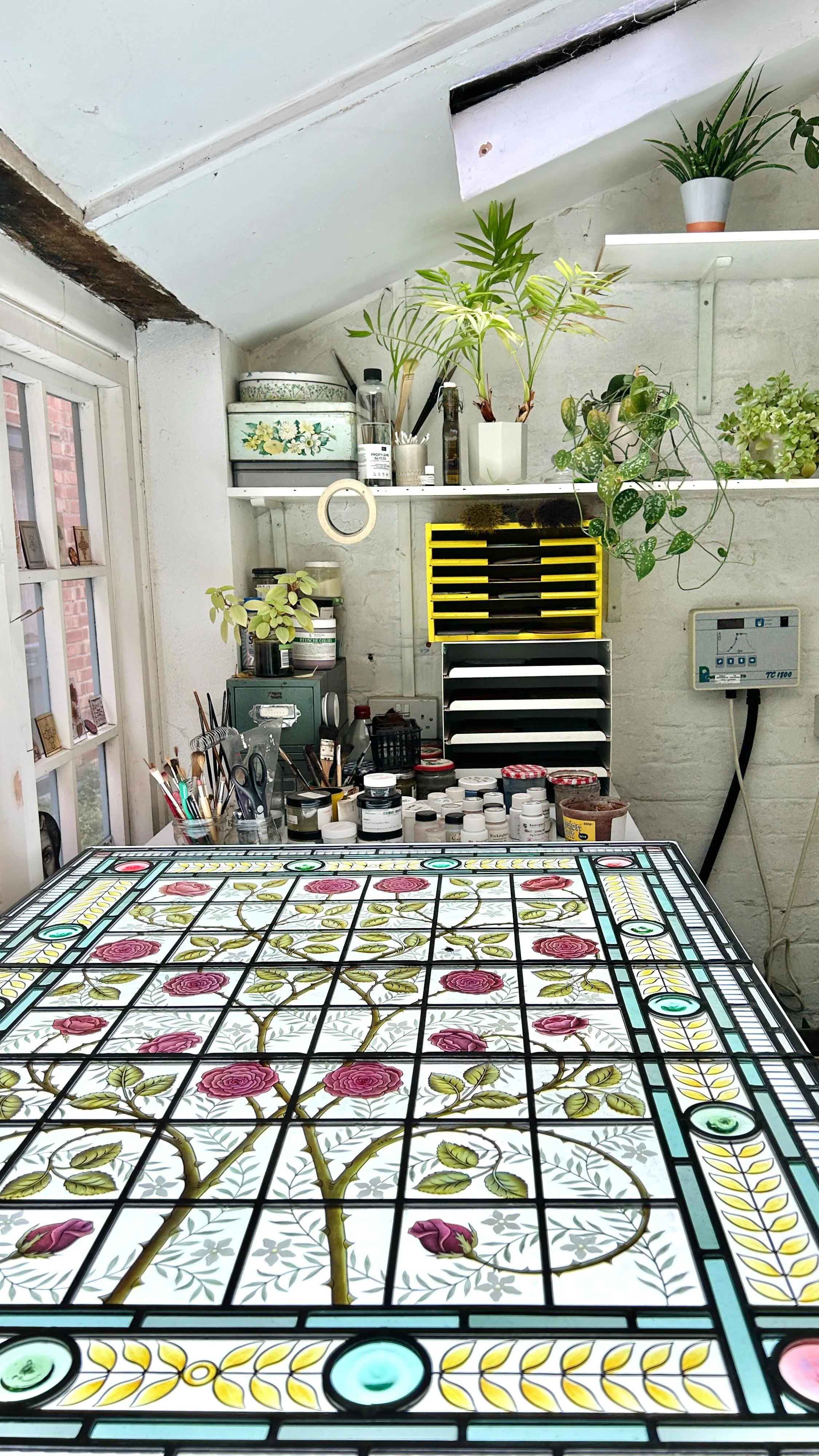 "My favourite part of the stained glass process is choosing the glass colours - selecting just the right tones and shades so that they sing out next to each other. Once I have applied the paint and fired it in the kiln, something magical happens - seeing the contrast between the painted details and the vibrant colours, bringing the piece to life. "